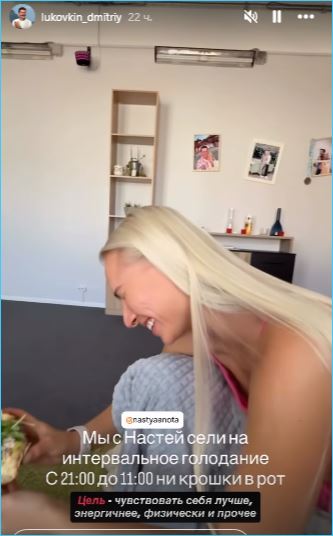 В реальном времени в паре возрождается конфетно-букетный период, Анастасия Филиппова и Дмитрий Луковкин сделали ставку на совместные занятия спортом, а от правильного питания им приходится отказаться ради вечеринок, происходящих по ночам на Доме 2.