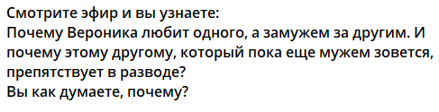 Если Вероника решила повторить путь бывшей участницы Дома 2 Ирины Агибаловой, то навряд ли у неё получится вернуться в семью, потому что Альберт живет с молодой девушкой и если его отношения продолжатся, то Ксения Карпова может забеременеть. Никто не слушает ведущего Андрея Черкасова, который отправляет Альберта в Беларусь, чтобы он развелся с супругой. Что опять задумали Граковичи?