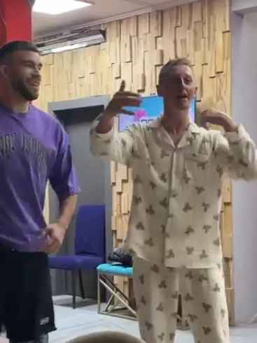 Тигран Салибеков поздравил жену букетом и вручил подарок, а Альберт Гракович, которого подготовил Игорь Григорьев, исполнил рэп. Несколько участников Дома 2 вышло из мужской спальни поздравить Викторию, также она пригласила за стол Элину Рахимову и Катю Квашникову.