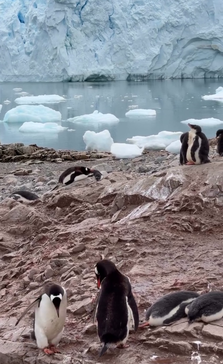 Уже около недели Романец путешествует на лайнере и исследует ледяной континент. Она снимает видео про пингвинов, которых не разрешено трогать, но не забывает намекнуть, что в круизе всё включено и можно пить игристое.