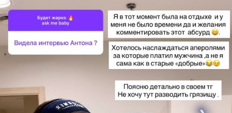 Бывшая участница телепроекта Дом 2 Виктория Романец отдыхает на Маврикии и не сразу узнала, что её бывший муж Антон Гусев наговорил в интервью. В частности, что она пьет по 18 аперолей в день и не хотела рожать ребенка. Интервью Гусева можно посмотреть на шлоке здесь. Виктория призналась, что Гусев испортил ей настроение, прошло 3,5 года после развода, она про него и не вспоминает, но может, со своей стороны, объяснить, почему пришлось расстаться.