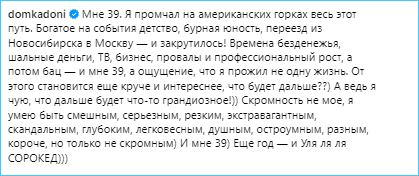 Сам Влад Кадони в присущей ему ироничной манере выложил пост в социальных сетях, кратко подведя итоги пережитого к 39 годам.