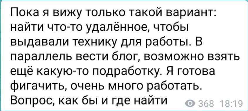 И даже продержалась несколько дней в сфере производств и торговли, жалуясь на то, что и эта попытка закончилась увольнением по вине хейтеров.