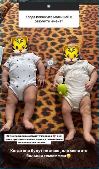 Впрочем, подписчики бывшей ведущей Дома 2 уже выяснили, что одного из малышей зовут Кристиан, другого, если верить слухам в сети, то ли Даниэль, то ли Ричард.