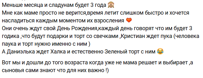 На днях Ефременкова рассказала подписчикам, что заказали её сыновья на день рождения. Они ждут развлечения и торт со свечами, но почему-то не приезда на праздник родного отца.