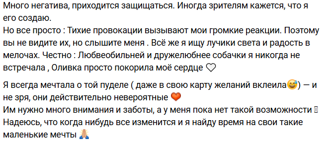 Юнита всегда мечтала о пуделе и сейчас её любимица - собачка Оливка. Также девушка хочет создать семью, но не может выбрать подходящего партнера на телестройке, о чем мы рассказывали на шлоке. Могла бы она снизить свою планку ради личного счастья? А стоит ли давать проектным парням поблажки?