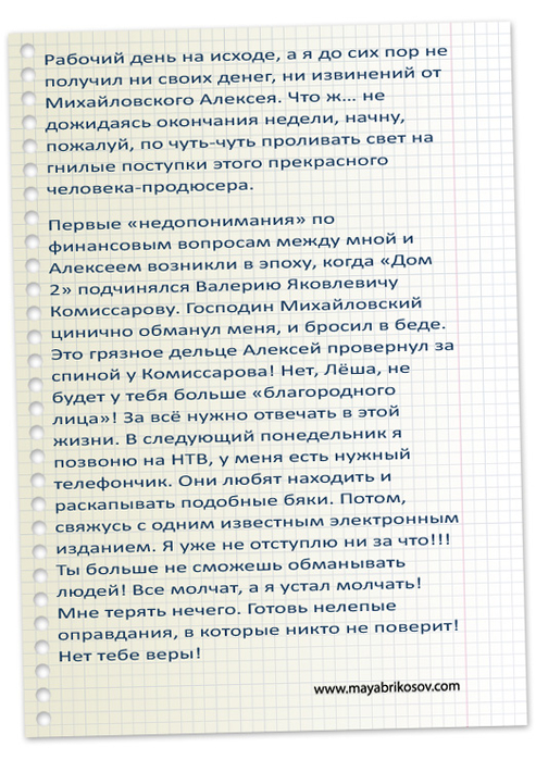 За что Май Абрикосов мстит Михайловскому?