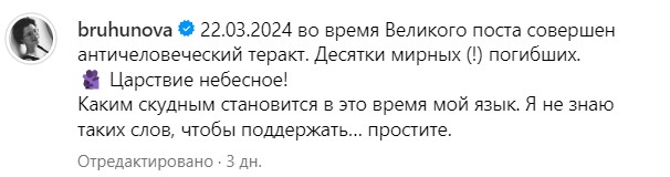 Как известно, трагедия, развернувшаяся 22 марта в концертном комплексе Крокус Сити Холл, оставила равнодушными, пожалуй, только самых чёрствых. Почти 140 человек погибло из-за ужасающего террористического акта и это лишь сплотило россиян, искренне переживающих за единение своей страны. Не осталась в стороне и супруга Евгения Петросяна - она не нашла слов описать своё состояние после случившегося, но выразила соболезнования семьям погибших и пострадавших.