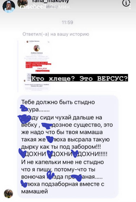 Бигрина на пару дней исчезала с проекта, она не хотела читать в Инстаграм сообщения, затем показала зрителям Дома 2, насколько "добрая и милая" Бухынбалтэ умеет настраивать своих фанаток на нужную волну. Или сама Кристина с разных аккаунтов пишет Насте "сдохни". Не суть. Просто, какой кумир, такие и фанаты.