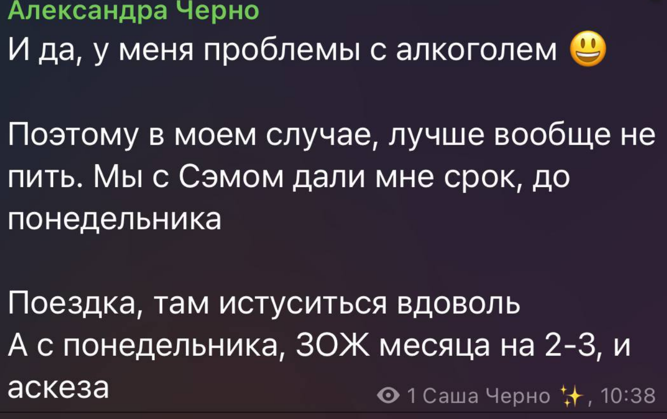 Александра Черно продолжительное время рассказывала зрителям Дома 2 о том, что она купила билет в Дубай и летит в Эмираты на день рождения своего друга, которому исполнится 42 года в первых числах февраля. Предположительно, это Андрей Черкасов, так как в Дубай летят Кристина Бухынбалтэ и Иван Барзиков, о чем мы писали на шлоке. Зрители телестройки провели расследования и выяснили, что Чернявская навряд ли попадёт на мероприятие, ведь у неё не оплачены налоги. Неужели знакомство с шейхами сорвалось?