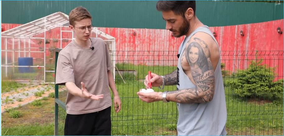 В дневном эфире 08.06.2025 показали визит в курятник Виктора Голикова и Тиграна Салибекова, которые решили яйца подписать, и с подопечными птицевода Яббарова таким образом познакомить Анну Ивулину.