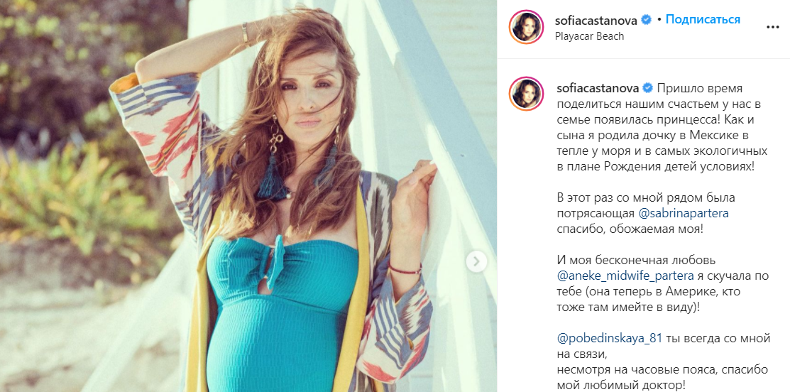София Каштанова родила девочку. Как стало известно, маленькая "принцесса" родилась в тепле у моря в Мексике.